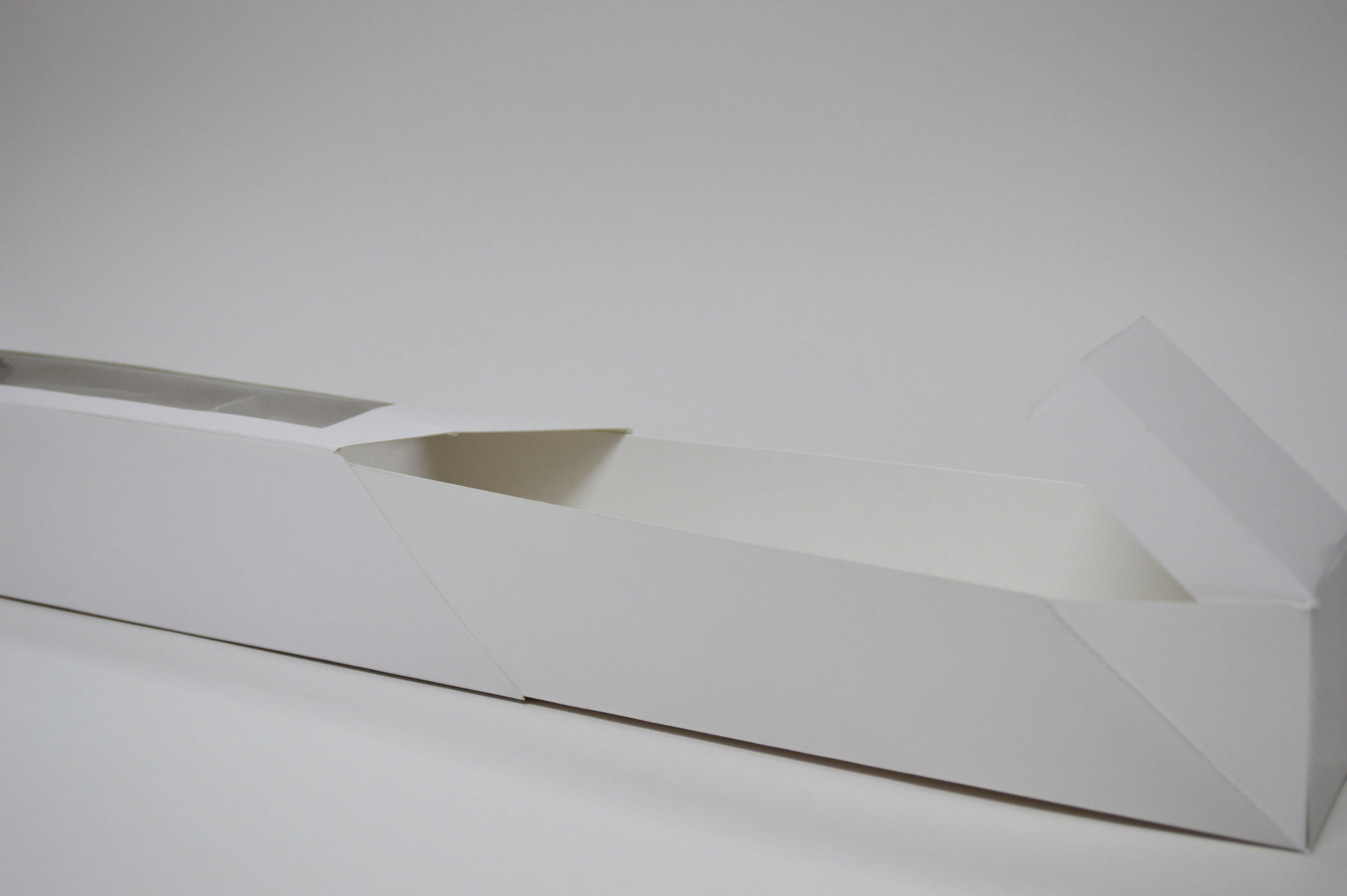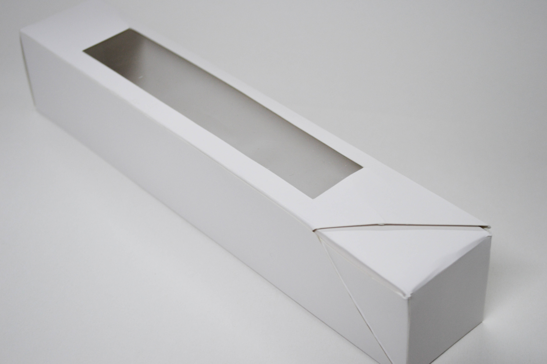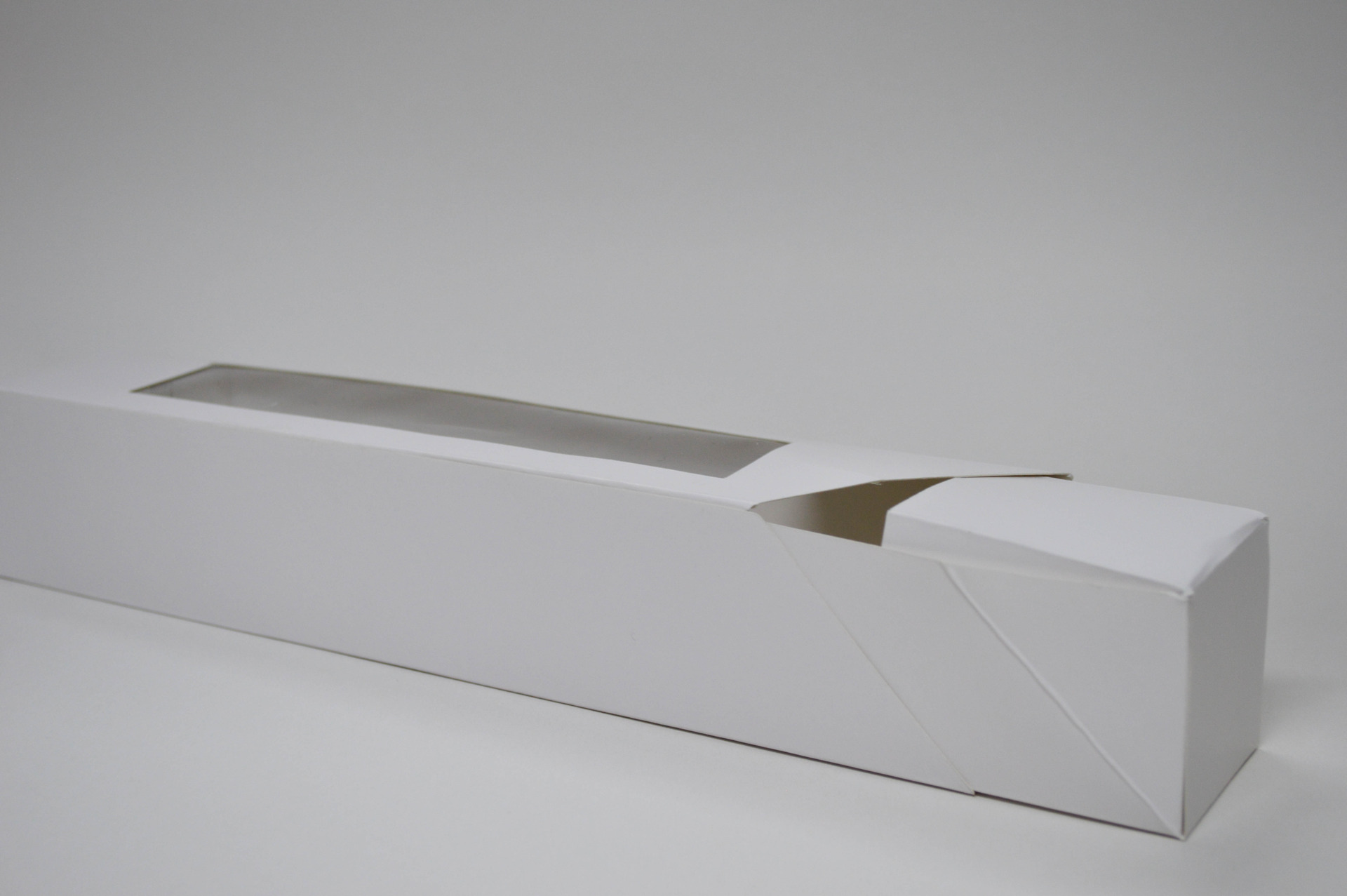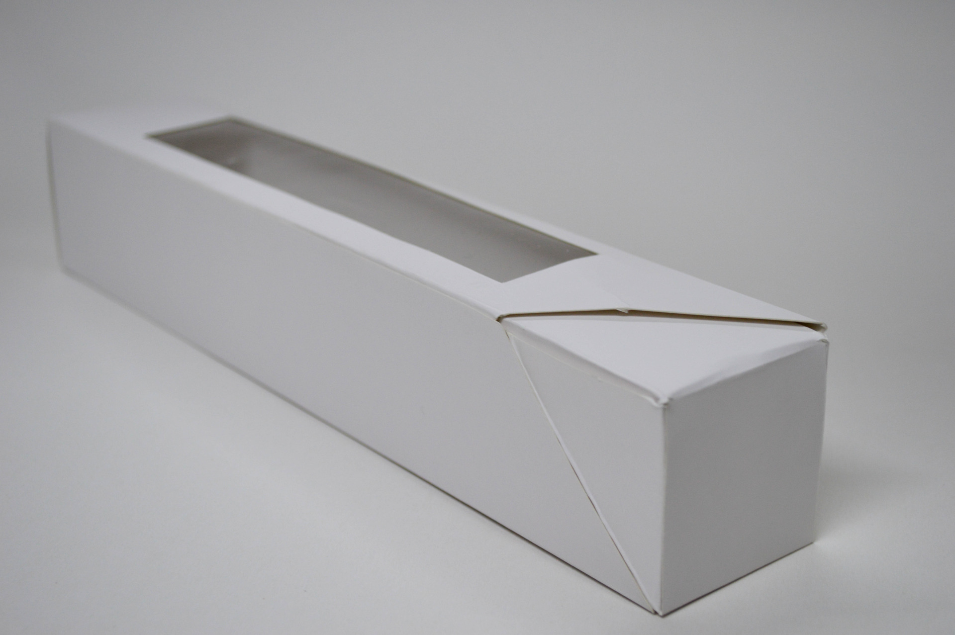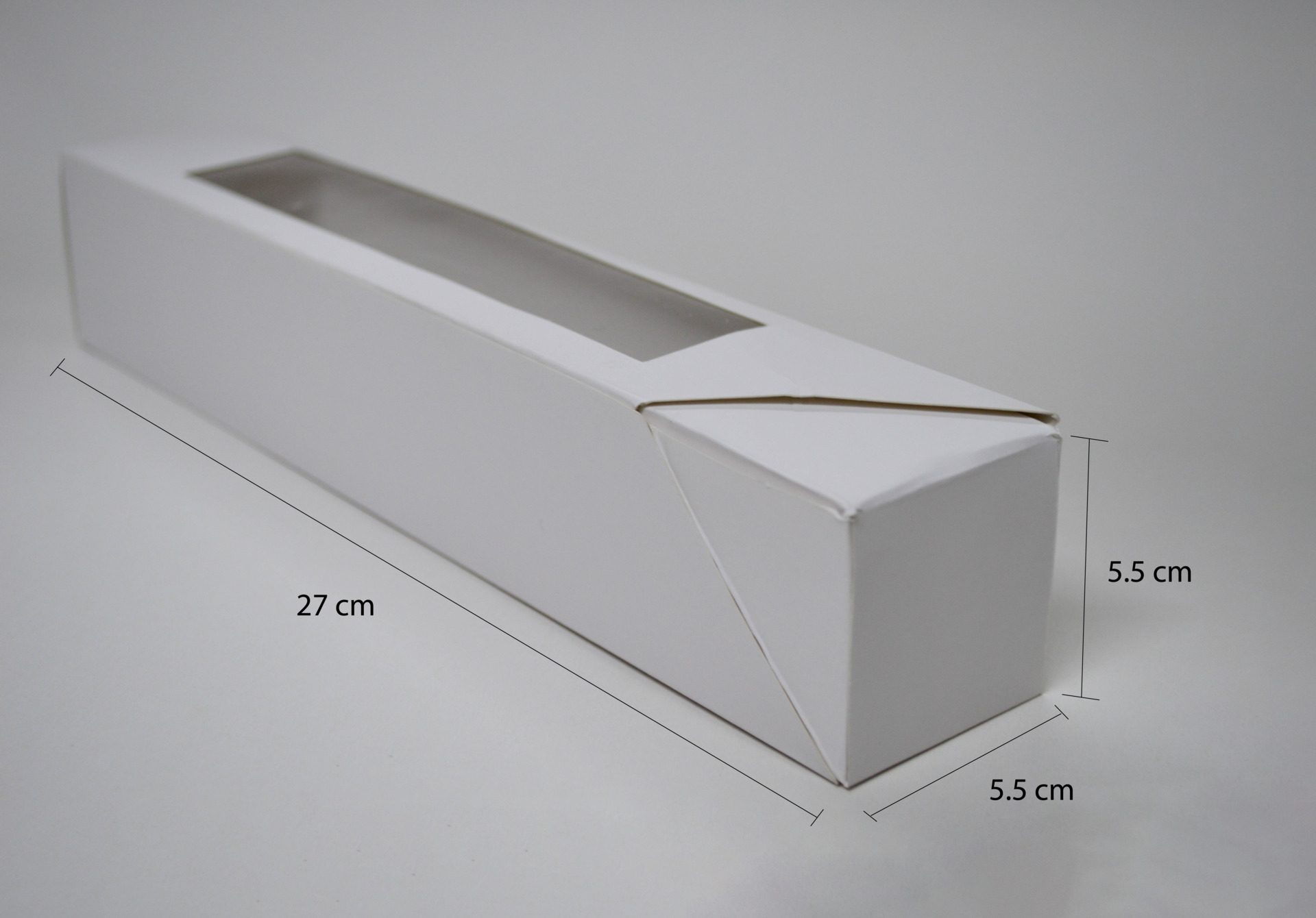 Medidas 27.5 x 5 x 5 en Cartulina sulfatada importada grado alimenticio, aprobada por fda. calibre 14 ptos. color Blanco
