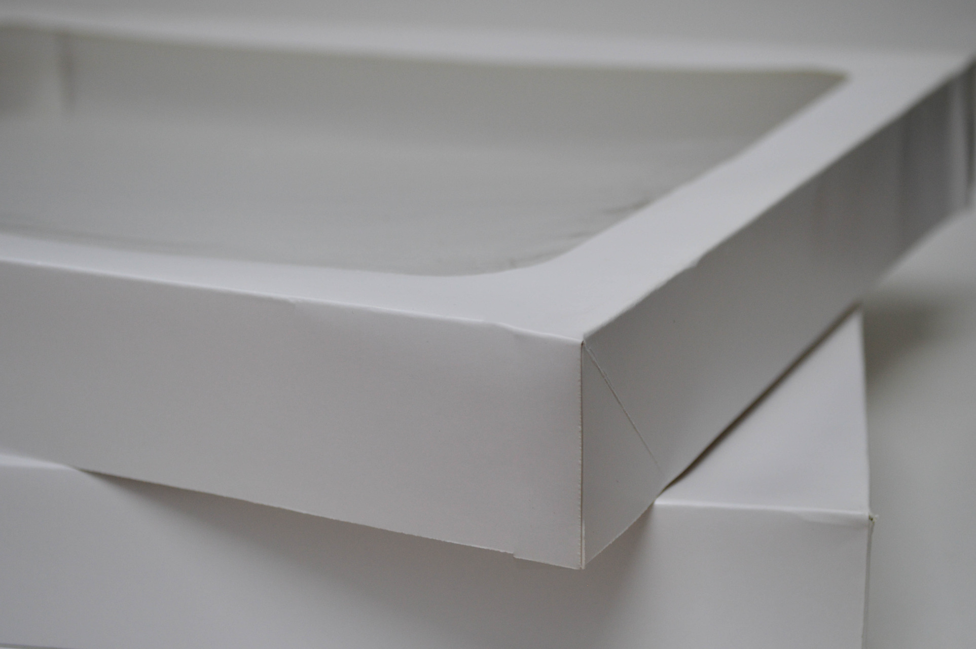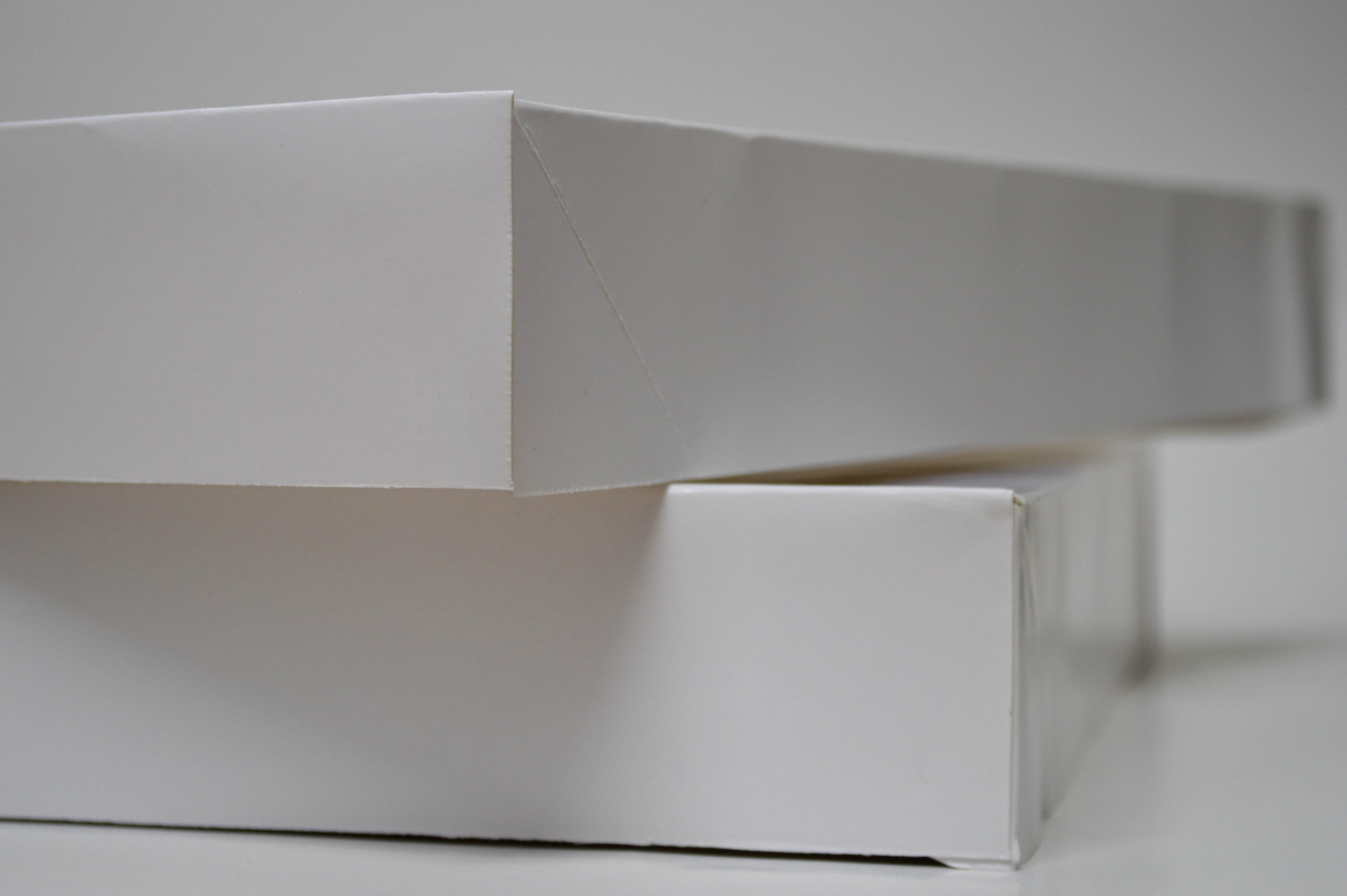Medidas 44 x 33 x 4.5 en Cartulina sulfatada importada grado alimenticio, aprobada por fda. calibre 16 ptos. color Blanco.